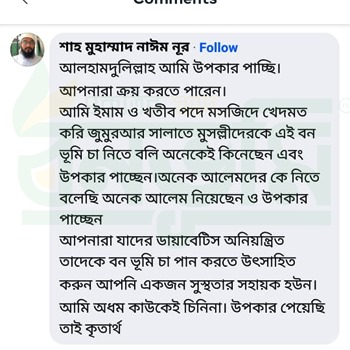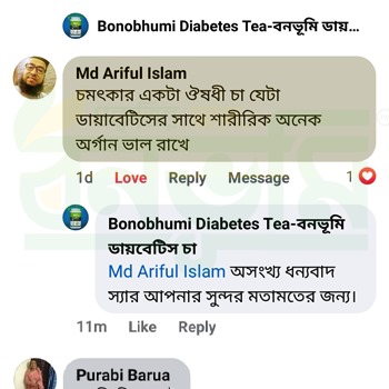বনভূমি ডায়াবেটিস চা আমায় সুস্থ্য জীবন ফিরিয়ে দিয়েছে আলহামদুলিল্লাহ্।